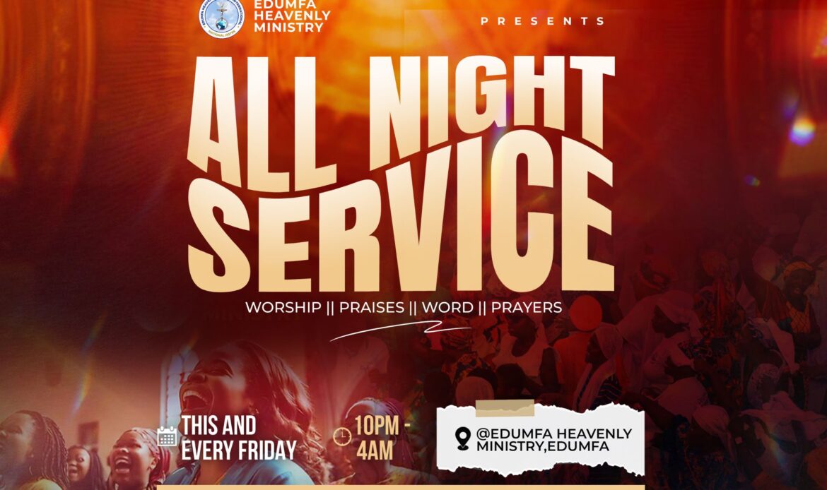 Every Friday, Edumfa Heavenly Ministry hosts the All Night Service Ghana — a powerful revival meeting of worship, praises, prayer, and the Word. Come and encounter healing, deliverance, and transformation at Ghana’s leading prayer camp.